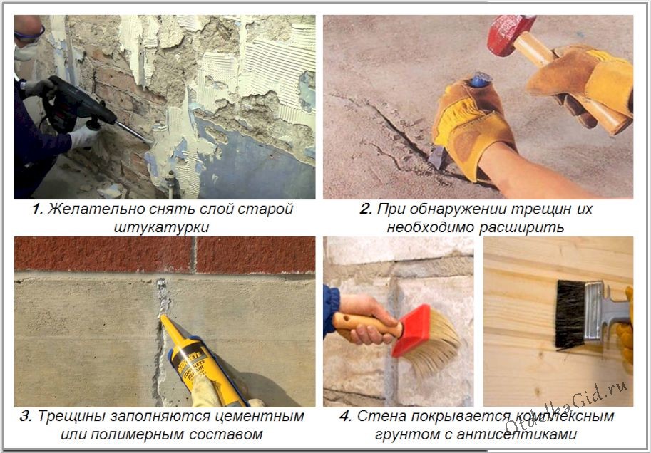 - Поверхность очищается от старого декоративного материала, если таковой имеется, удаляется пыль и грязь.